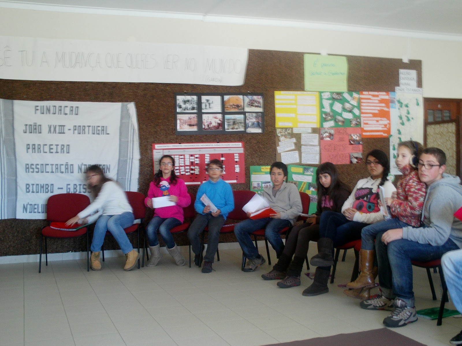 Com uns versos personalizados e a música do "Ponha aqui o seu pézinho", lá fomos descobrindo quem fazia parte de que grupo.